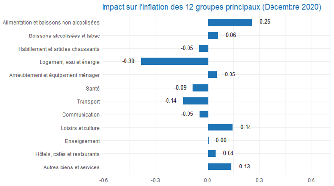 Enfin, l’électricité s’en sort un peu mieux, avec « seulement » -4,5 % de variation sur ses prix entre décembre 2019 et décembre 2020. La fin d’année a ainsi également permis au prix de l’électricité d’amorcer une petite reprise, puisque la déflation sur 12 mois s’élevait encore à -7,4 % à la rentrée des classes.