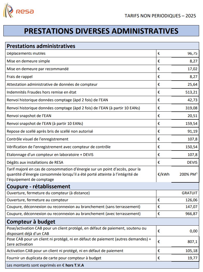 Coût d’ouverture de compteur avec RESA