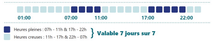 - Réforme du bihoraire : Les heures creuses s’invitent désormais en journée (11h00-17h00) et le tarif est identique 7j/7.